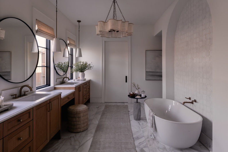 Undoubtedly one of our most exceptional home designs, this project holds a special place in our portfolio, with the added delight of having the incredibly sweet founder of nuuds, Daryl-Ann Denner, as our client. From the formal living room to every meticulous detail, we were eager to showcase the seamless integration of a beautifully muted color palette with natural, organic textures. The family's "everyone-pile-in" lifestyle was at the forefront of our minds as we furnished each room, incorporating extra deep, custombuilt sofas, swivel chairs for backyard views, and a dining table in place of a desk in the nuuds home workroom.